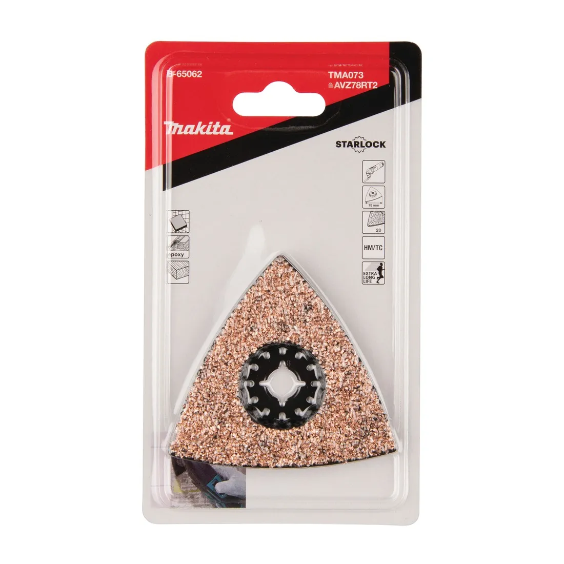 Lama abrasiva per multiutensile STARLOCK utilizzo: legno, piastrelle, resina epossidica. Larghezza 78mm, grana TC #20. La confezione contiene 1 pezzo.