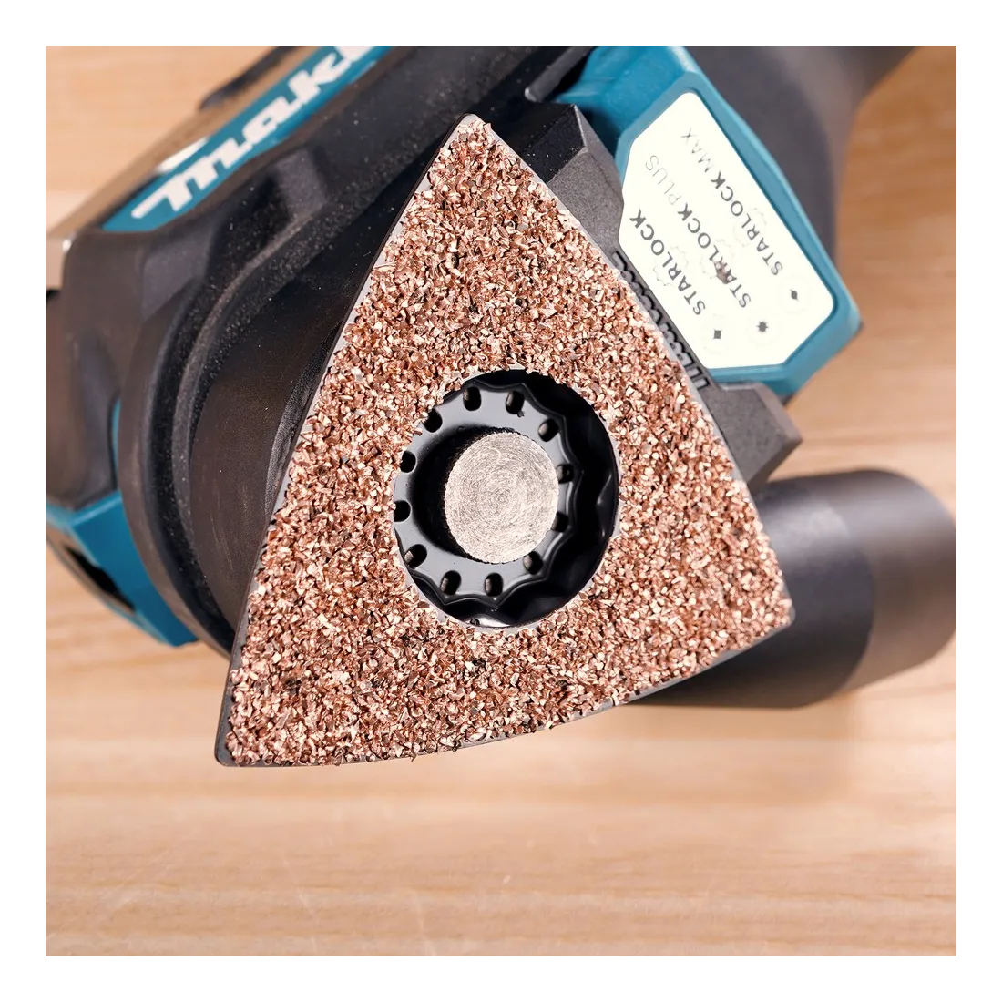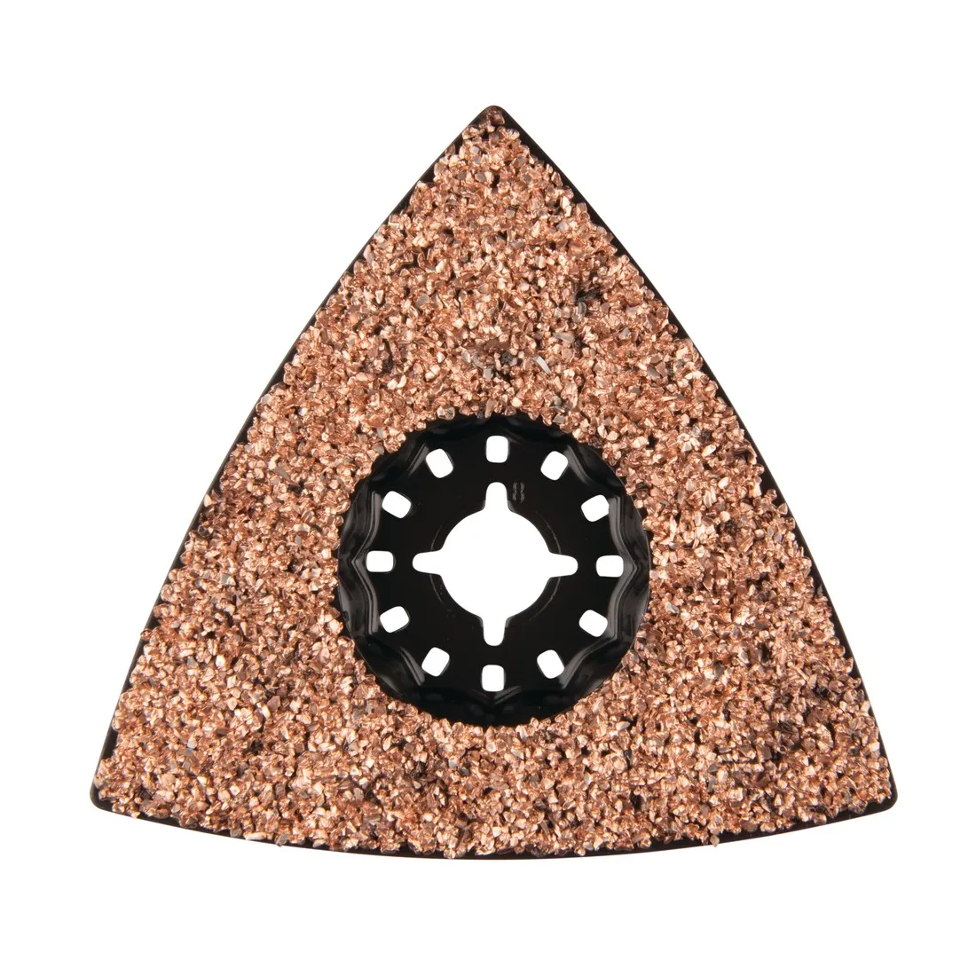 Platorello abrasivo per multiutensile con attacco STARLOCK, compatibile anche con macchine dotate di attacco OIS, STARLOCK PLUS e STARLOCK MAX, offre un innesto rapido grazie alla forma a stella e permette una regolazione in 12 posizioni con incrementi di 30 gradi.