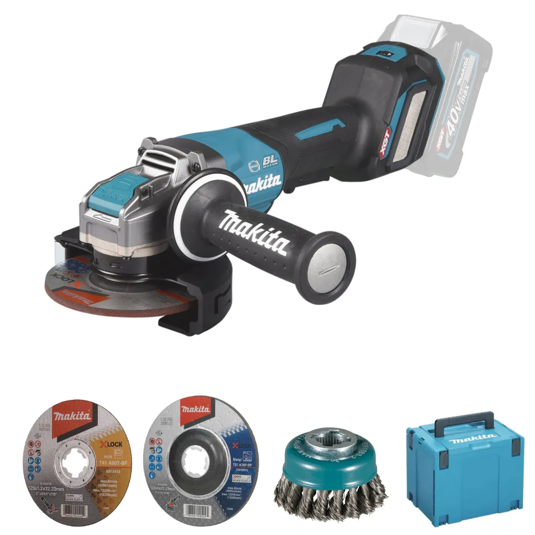 Smerigliatrice angolare Ø125 - 40Vmax, con interruttore palmare, BLmotor ideale per lavorazioni di spianatura e sbavo - dotata di protezione polveri posizionate sulle griglie aspirazione in modo da preservare e garantire una buona areazione del motore