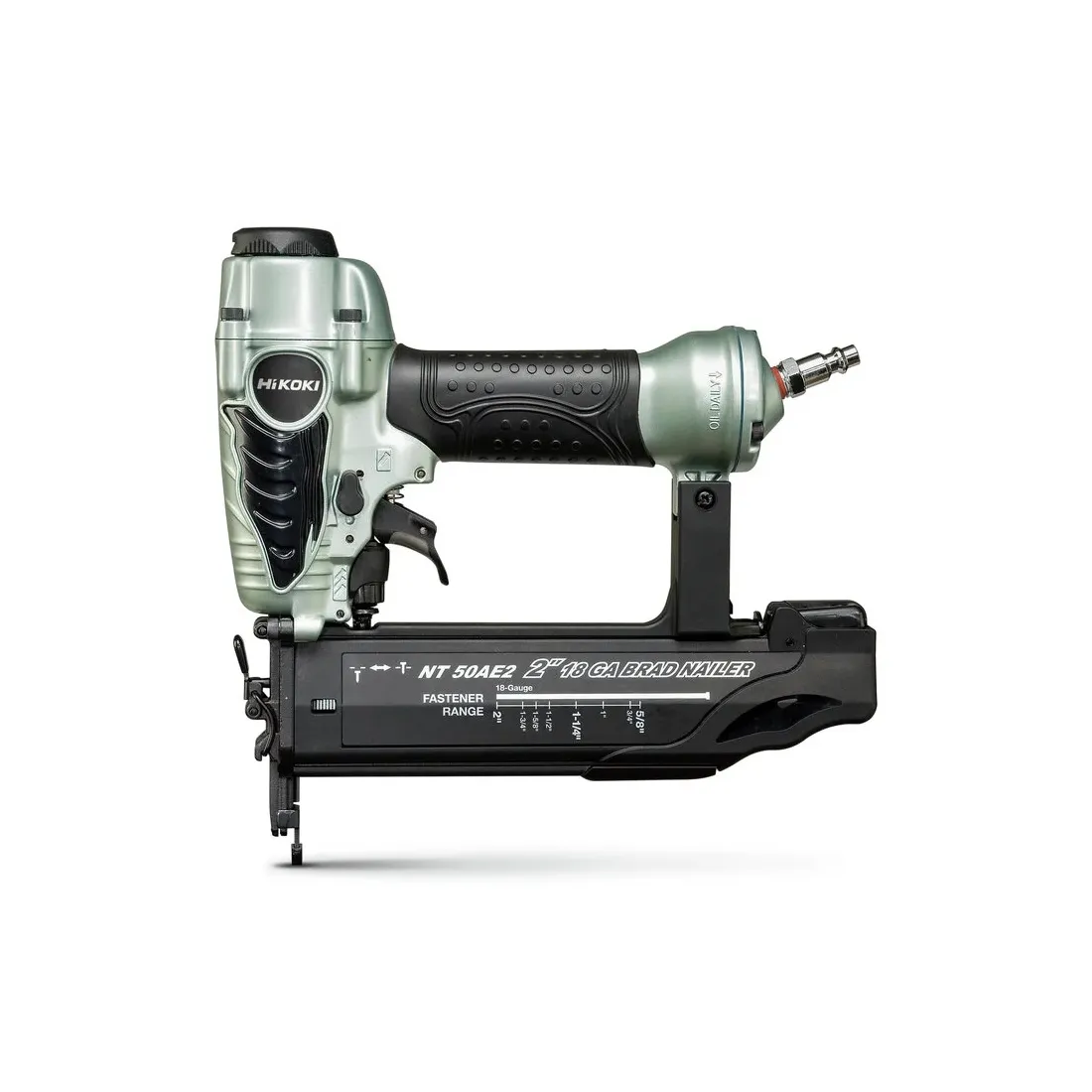 DATI TECNICI Calibro: 18Ga. Pressione di lavoro: 0,49 - 0,83 MPa Consumo d'aria a 6,9 bar: 0,73 Angolo chiodi assemblati: 0° (groppini18Ga) Lunghezza chiodi: 16 - 50 mm Diametro codolo chiodi: 1,25 - 1 mm Capacità caricatore (chiodi): 100 Distanza minima dal muro: 7 mm Peso (netto): 1 kg Lunghezza utensile: 254 mm Larghezza utensile: 60 mm Altezza utensile: 233 mm Sistema di azionamento: Pressione normale Regolazione della profondità : Sì Modalità sequenziale a contatto: Sì