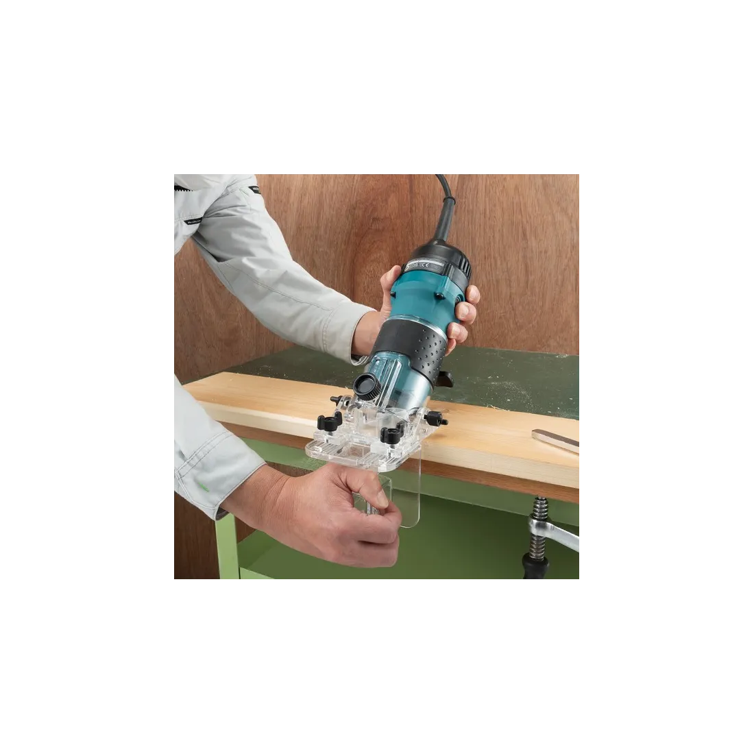 Il rifilatore Makita 3712 un utensile professionale versatile, ideale per una vasta gamma di operazioni di fresatura e rifinitura su legno e materiali derivati. Grazie alla base inclinabile trasparente, consente lavorazioni precise anche su bordi inclinati, garantendo sempre una visibilità ottimale dell' area di lavoro.