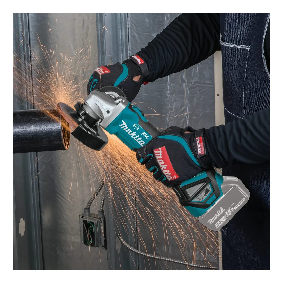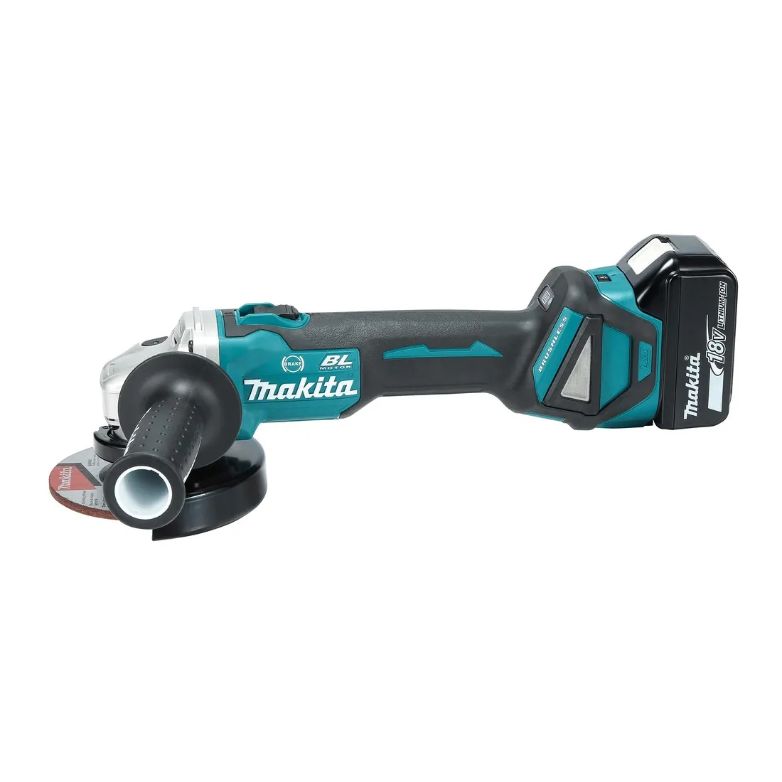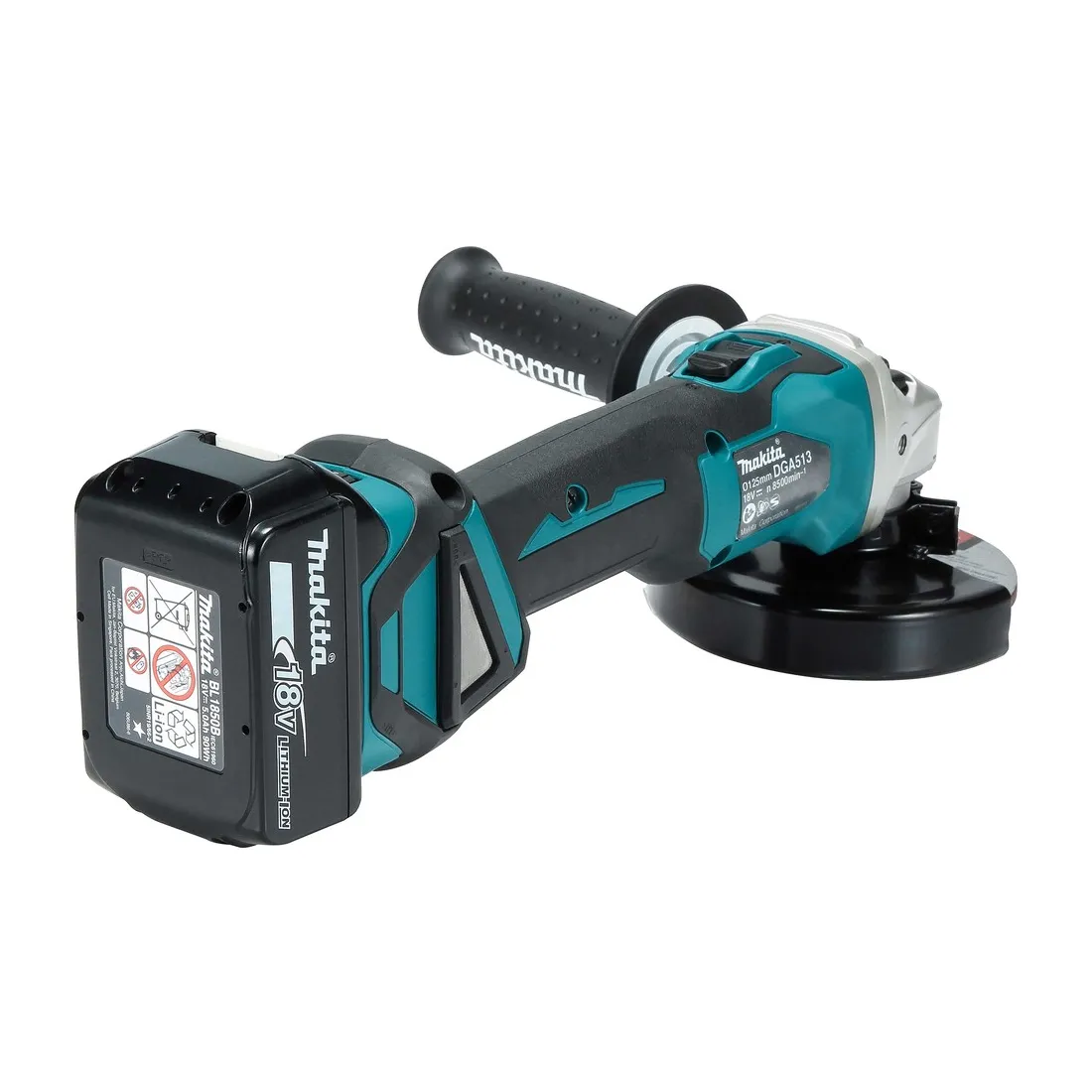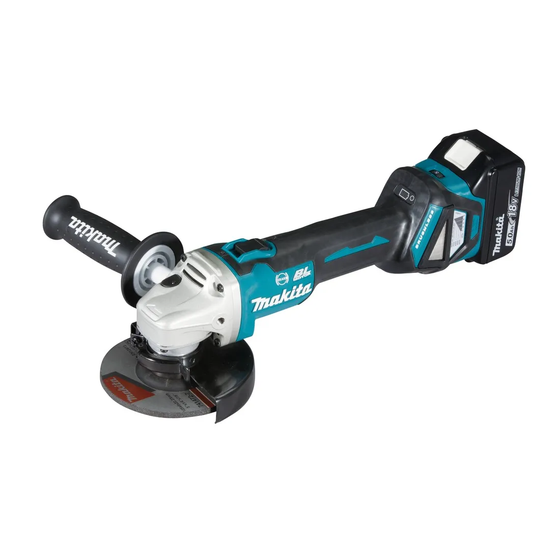 Fornito con 2 batterie 5,0Ah BL1850B, caricabatterie rapido 45' DC18RC, valigetta makpac tipo 3 (821551-8), disco abrasivo, impugnatura laterale, copri disco
