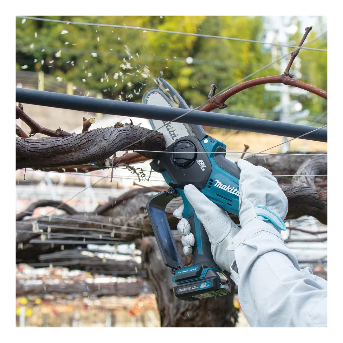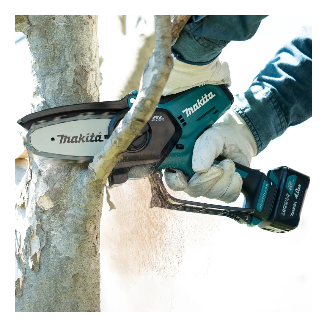 Potatore a catena UC100DWA1J di elevate performance esecutive, leggero e maneggevole e sicuro in tutte le applicazioni di taglio per potature di rami