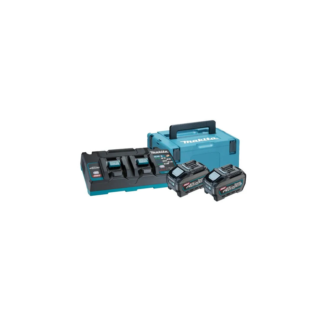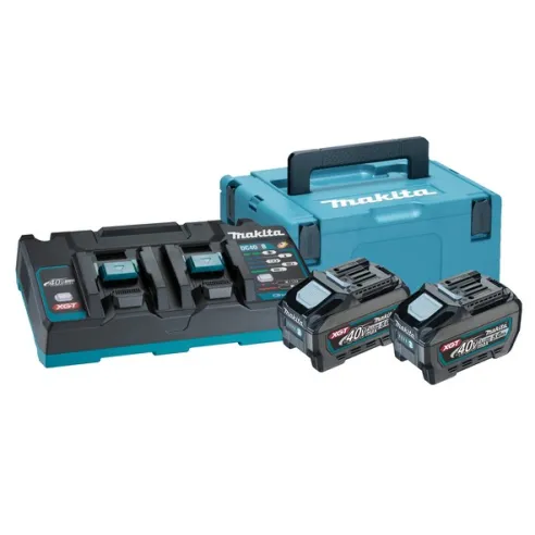 Kit energy 40V Makita: 2 batterie BL4050F (40V 5.0Ah) + 1 caricabatterie doppio DC40RB + valigetta Makpac 3